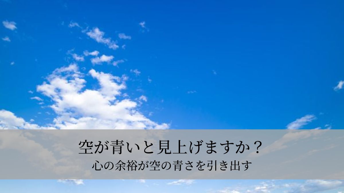 現代社会では、ストレスや不安に悩まされることが多く、そんな心の状態では、外の世界がいくら美しくてもその美しさを感じ取る余裕がありません。逆に言うと、心に余裕を持つことで、周りの美しいものに気づき、感謝する気持ちが生まれます。空の青さもその一つです。私たちが心に余裕を持ち、何気ない瞬間に感動できるようになることは、日々の生活をより豊かにするための大切な方法です。