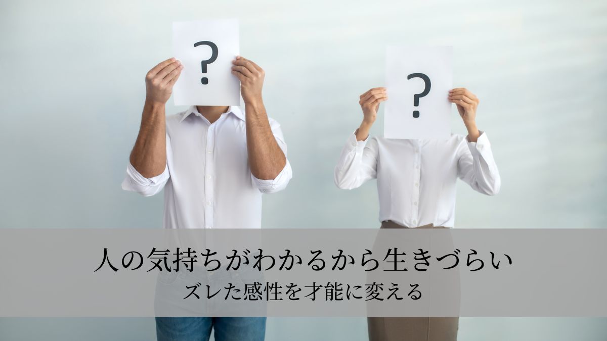 今日は「人の気持ちがわかるから生きづらい|ズレた感性を才能に変える」と題して、人の気持ちがわかるについて考えます。
